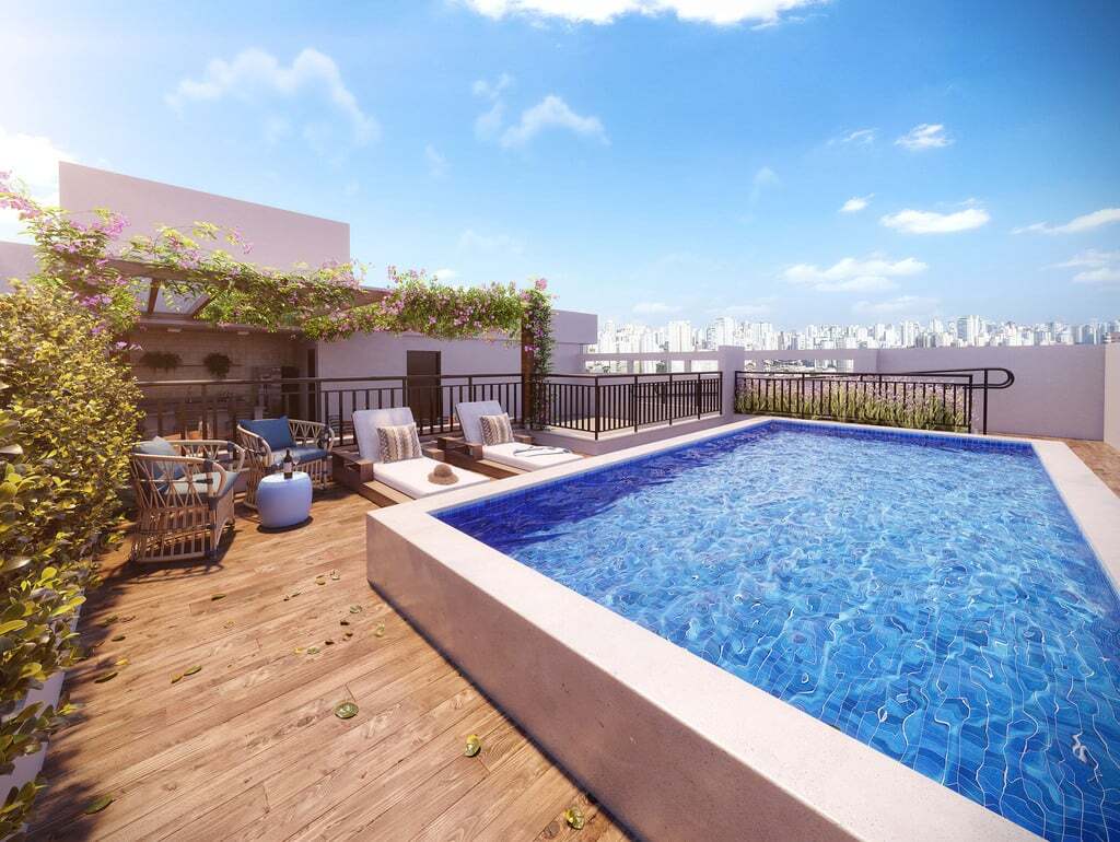 Conheça os apartamentos de 2 dormitórios e studios com varanda a apenas 350 m do Jardim Botânico, com Lazer completo e piscina no rooftop.
